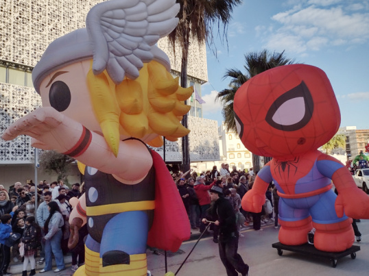 Man feierte den Drei-Königs-Tag mit einem riesigen Umzug. 12 Wagen, eine Gruppe von Beduinen, viele kleine und größere Gruppen lockten tausende Menschen jeden Alters in die Altstadt. Kein Wunder, es wurden allein 16.000 Kilo Süßigkeiten von den Wagen in die Menge geworfen.