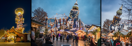Atmosphäre der besonderen Art: Die besondere Beleuchtung der Brauerei und der umliegenden Bauwerke schafft eine beeindruckende, fast magische Adventsstimmung. Glänzende Fassaden, warmes Licht und das bunte Farbspiel Hundertwassers setzen Akzente, die Besucherinnen und Besucher bereits beim Ankommen in eine festliche Erwartung versetzen. In der Sternenalm wird Wärme spürbar: beheizt, festlich dekoriert und mit einer vielfältigen Auswahl an Kunsthandwerk. Besucherinnen und Besucher dürfen sich auf eine Mischung aus Handwerk, Kunst, kulinarischen Genüssen und familiärer Atmosphäre freuen.