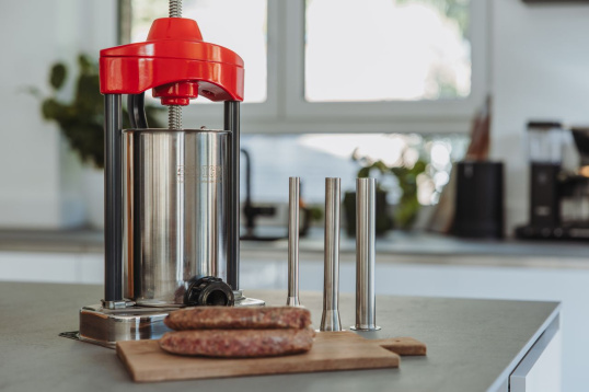 Zum Sortiment von Friedr. Dick gehören seit Jahren handbetriebene Tischwurstfüller in unterschiedlichen Größen und Ausführungen für den Profi sowie auch für den Hausschlachter mit eigener Wurstherstellung. Für den Hobbykoch, Jäger und BBQ-Fan gibt es den handlichen Hausschlachterfüller mit 3 Liter Fassungsvermögen.
