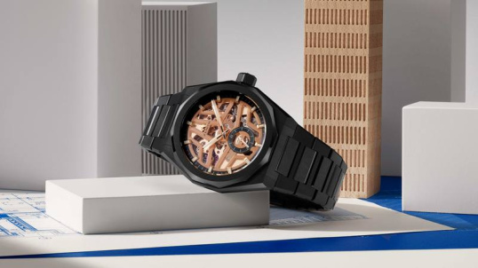 Diese DEFY Skyline Skeleton führt den Ausdruck von zeitgenössischem Uhrendesign in ein Reich, das von offenen Strukturen und geometrischen Formen geprägt ist. Ihre skelettierte Konstruktion gibt den Blick frei auf das Kaliber El Primero 3620 SK, während ihr Wechselspiel von Licht und Schatten den dynamischen Rhythmus einer Skyline widerspiegelt.