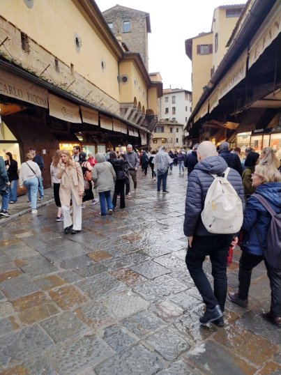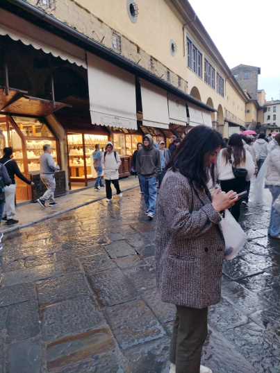 Obwohl die Brücke zu den kostenlos zu besuchenden Wahrzeichen von Florenz gehört, sieht man angesichts der gestiegenen Goldpreise immer wieder Menschen, die ihren Kontostand überprüfen.