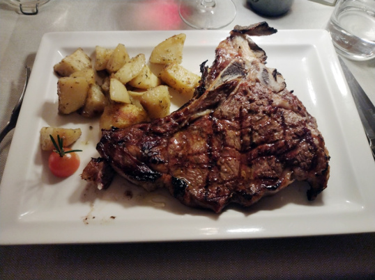 Nicht vergessen kann ich den Blick in die vielen Gaststätten, in denen Rindfleisch in Kühlschränken reift. Bei vielen reift auch der Wille, ein Bistecca alla Fiorentina zu probieren. Wobei so ein gut abgehangenes T-Bone-Steak ist ein wahrer Gigant, denn in der Regel wiegt so ein Stück Fleisch mindestens 1,5 Kilo. Da wundert es nicht, dass sich dieses Gericht gern eine ganze Gruppe teilt. Mein Bistecca alla Fiorentina hatte allerdings „nur“ 500 Gramm.