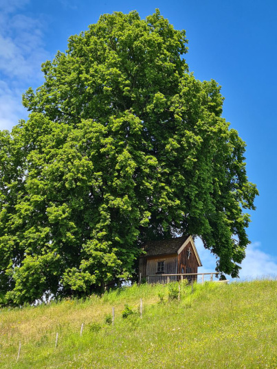 Am letzten Tag startet die Etappe wiederum in Murnau und führt zur Maria-Hilf-Kirche auf einer Anhöhe – ein barockes Kleinod mit Blick auf das Murnauer Moos. Der Weg führt weiter zu den Vier Linden, einer markanten Wegkreuzung mit jahrhundertealten Bäumen, bevor das Bauerndorf Froschhausen erreicht wird. Dort steht die Mesnerhauskapelle, ein eindrucksvoller Ort der Stille. Anschließend führt der Weg entlang des Moosrands zur alten Höhlmühle, die einst die Region mit Mehl versorgte und heute ein ruhiger Rastplatz ist.