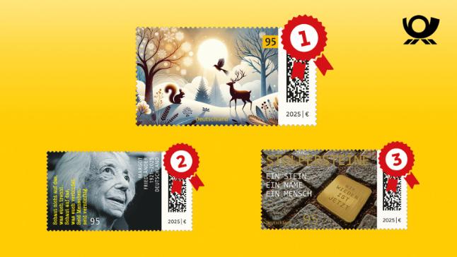 Deutschlands Briefmarkenfreunde haben abgestimmt: Die Briefmarke "Winterlandschaft" ist die schönste Briefmarke des Jahres 2025. Sie zeigt eine schneebedeckte Landschaft mit stimmungsvollem Licht, Wald und Tieren. "Die ganze Szenerie strahlt Ruhe und Frieden aus. Danach sehnen sich offensichtlich gerade viele Menschen", sagt Briefmarken-Designer Thomas Steinacker zu seinem Siegermotiv.
