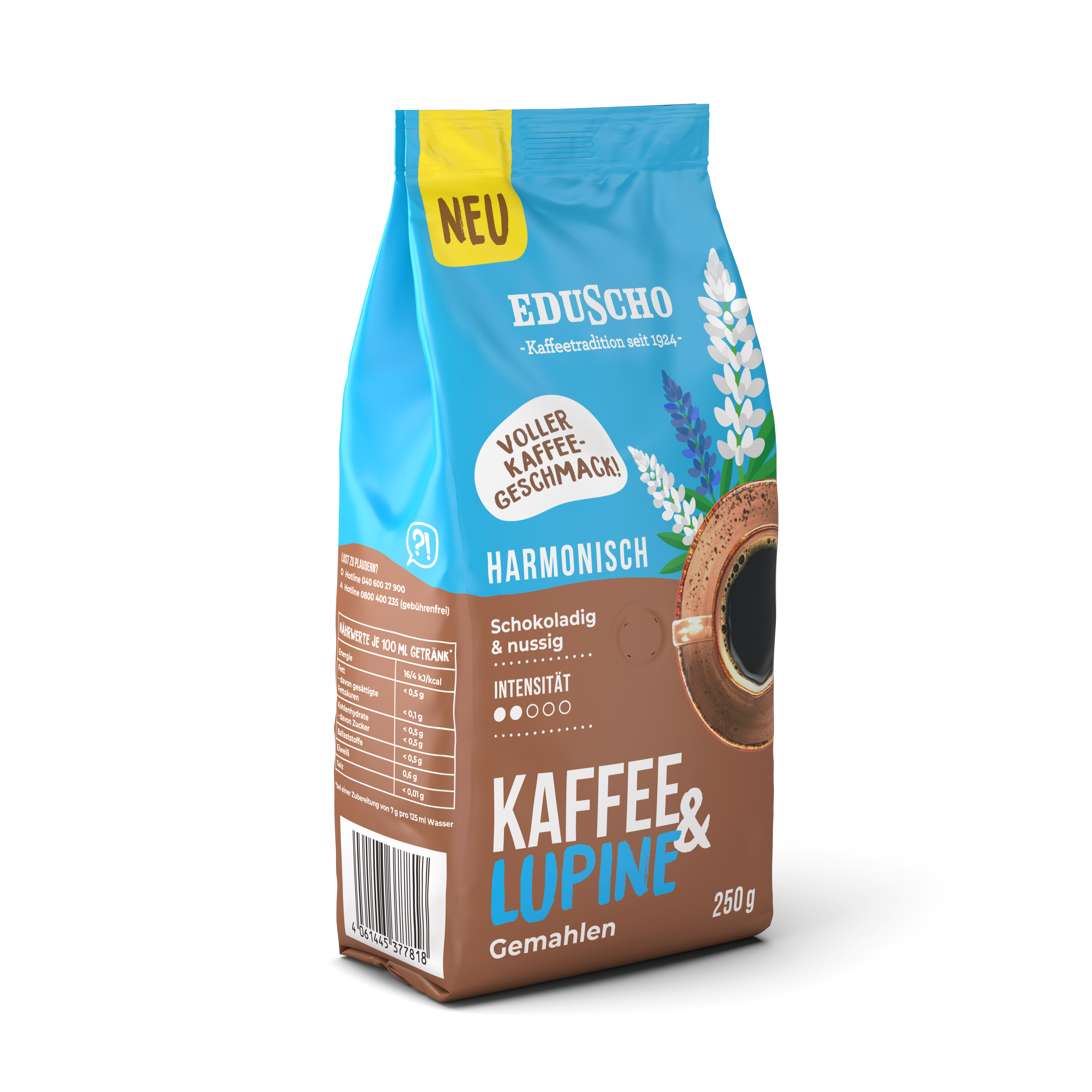 Eduscho steht für Kaffeetradition seit 1924. Eduscho steht aber auch immer wieder für Innovation. So wie bei der neuen Art Kaffee zu trinken: KAFFEE & LUPINE.