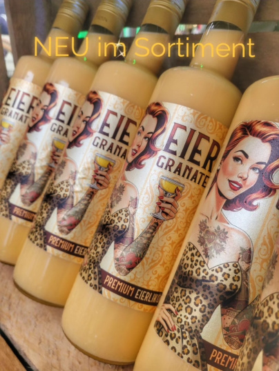 EIER-GRANATE: Ein Eierlikör, den nicht nur Frauen feiern. In unwiderstehlicher Optik der Flasche zieht der Burlesque-Retro Style ins Haus ein. Eine kleine Aufmerksamkeit für weniger als 20 Euro. Genauer gesagt ist der UVP bei 18,95 Euro. Verführerische Weihnachten sind granatig-garantiert.