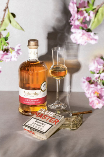 Ein Rendezvous zwischen cremigem Tabak und edler Frucht. Für den Kirschbrand verarbeitet Birkenhof ausschließlich vollreife Brennkirschen aus dem Markgräflerland – entsteint, und mit einem kleinen Anteil einer „Steinfraktion“ veredelt und perfekt aus- balanciert Die Reife in französischen Cognacfässern bringt Anklänge von Vanille, dunkler Schokolade und Bittermandel besonders gut hervor.Das Clubmaster Mini Filter Red mit seinen sanften Vanille-Noten ergänzt diese aromatische Tiefe mit geschmeidiger Eleganz. Ein harmonisches Pairing mit langem, cremigem Nachhall.